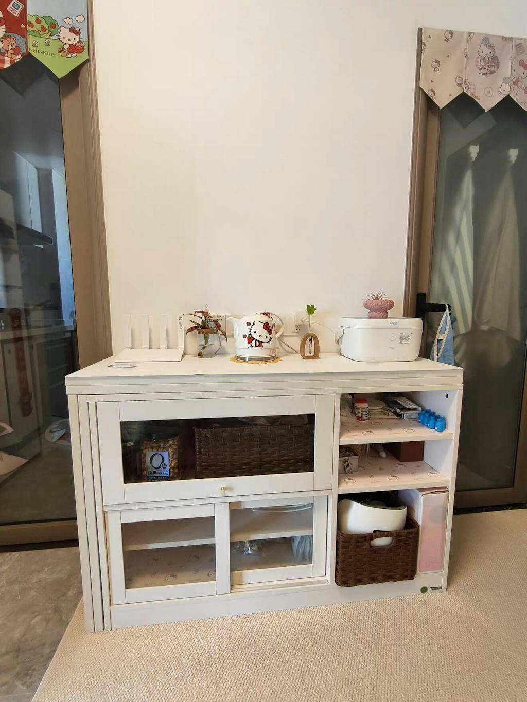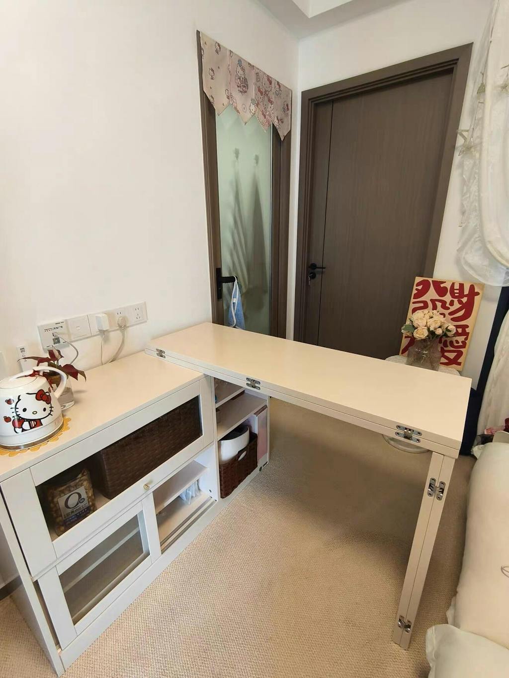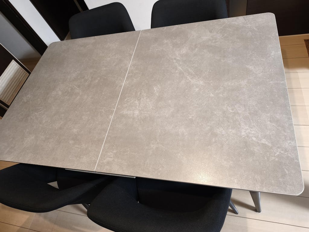 残念なポイントは、色が白というよりはクリーム色で少しイメージが違ったこと、テーブル天板の脚裏にフェルトを貼るので床に傷はつきませんと事前確認したにも関わらずフェルトが貼られていなかったので、デリバリー業者さんに貼っていただいたこと、テーブル天板がやや重いので、テーブル展開または収納する時に少ししんどいことです。
